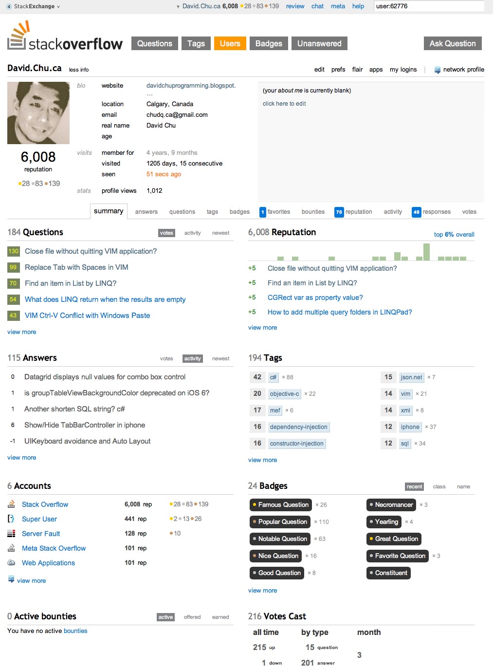 Yesterday, my StackOverflow reputation reached to 6003 on July 20, 2013. I have not been very active on SO actually during the period time from 5K Dec, 2012 to today. That's all my past activities contributed to the growth. On the other hand, it is the evidence my Q and A are valuable for some people.